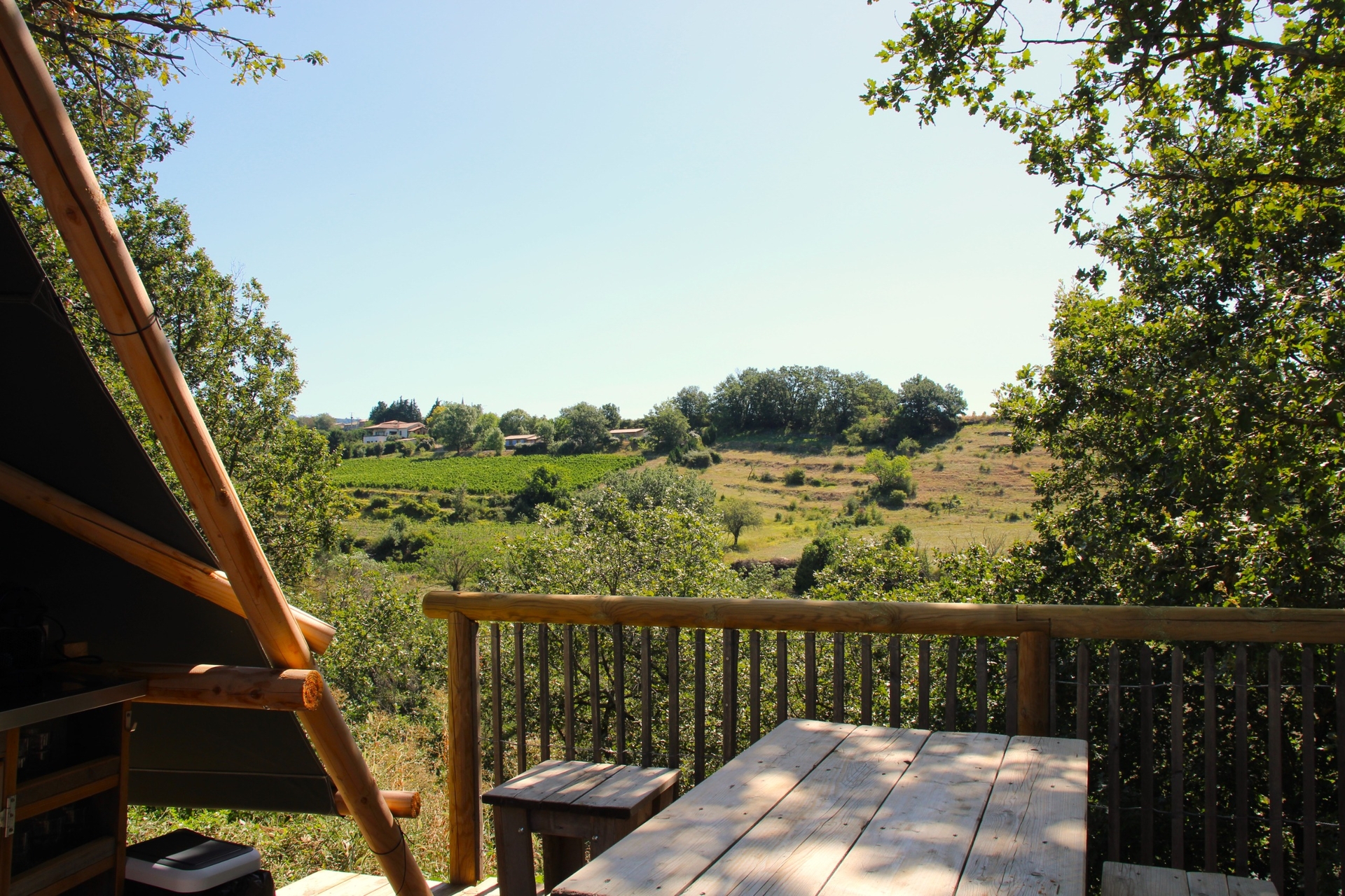 Venez profiter de la vue magnifique depuis la grande terrasse ombragée qui domine la rivière La Claduègne qui traverse notre camping.